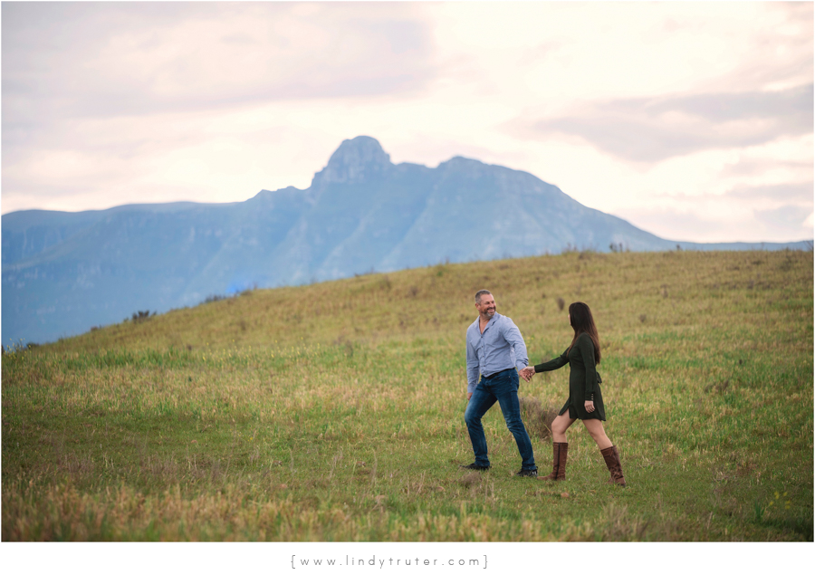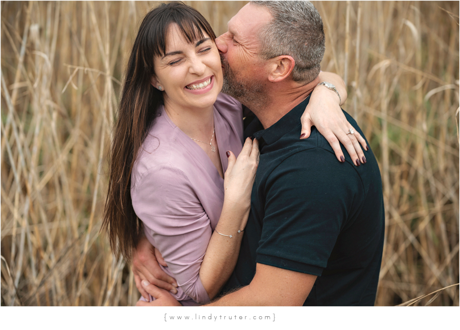 What a jol this shoot was! Jaco and Margaret came all the way from Kleinmond to have their engagement photo’s taken, and I thoroughly enjoyed our session together. These two lovebirds are legends- I say this, not only because they are such friendly, easy going people but because they kept smiling though I a) dirtied their newly washed car with my car’s dust, b) took them to a pretty field where something had died and told them to smile nicely even though they could almost not breathe because of the stench c) made them bundu bash into reeds, and sit on the most uncomfortable field and d) made them trot around in the rain, and run to chase light that was ever so fleeting.