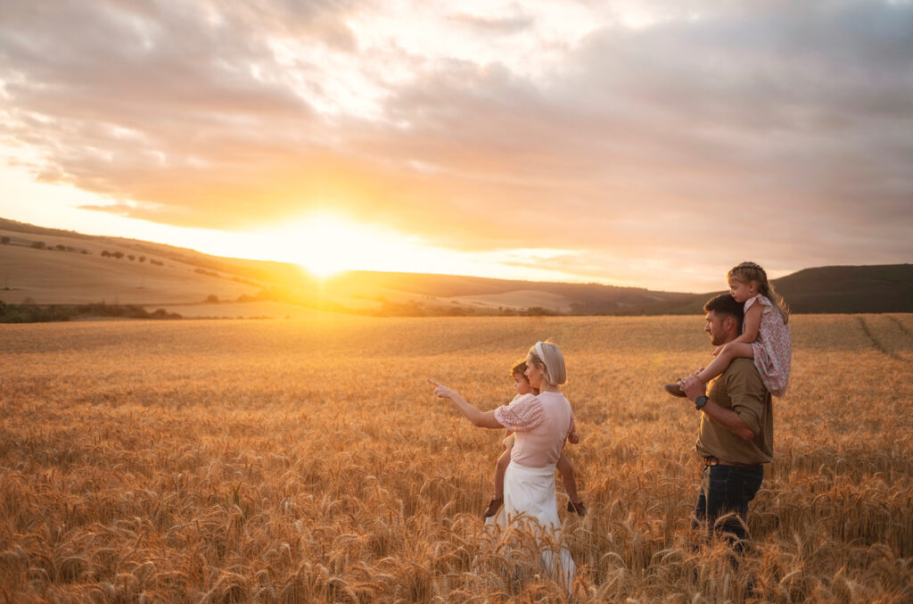 The golden hour is the time just after sunrise, or just before sunset- which provides gorgeous warm, soft, romantic light for photos. The golden hour is any photographer’s dream light to shoot in, especially this trigger happy photographer over here! So weather permitting, try and plan your couple or family shoot session around it, you won’t regret it!